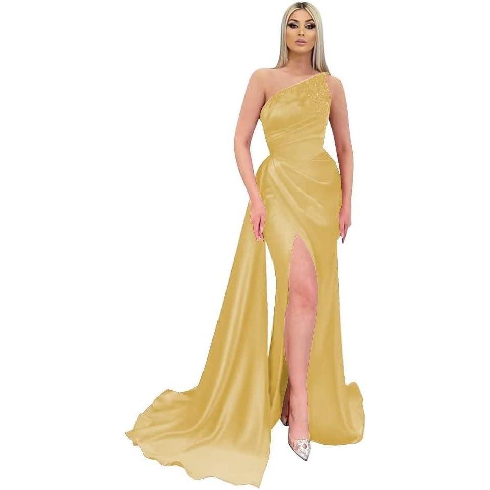 Our clearance event features the best deals on Appliques Mermaid Bridesmaid Dresses One Shoulder Prom Dress for Women Bodycon Formal Evening Gown with Slit(Gold) and accessories. Shop now!