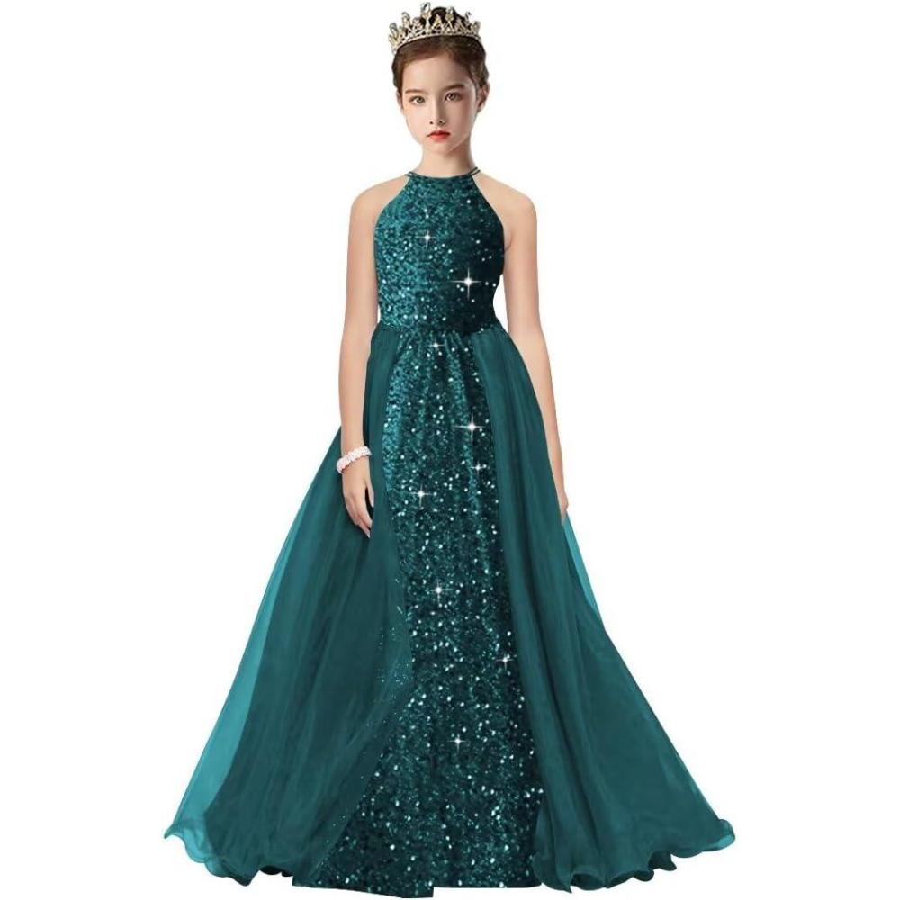 Don’t miss out on our limited-time offer: buy Halter Pageant Gowns Girls Sparkly Sequin Ball Gown Flower Girl Dresses with Tulle Cape Kids Toddle Dress(Peacock), get a free {accessory}!