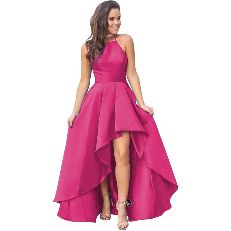 Be the first to review “High Low Prom Dress Satin Halter A Line Formal Evening Gown Wedding Guest Party Cocktail Dress with Pockets(Rose Red)”