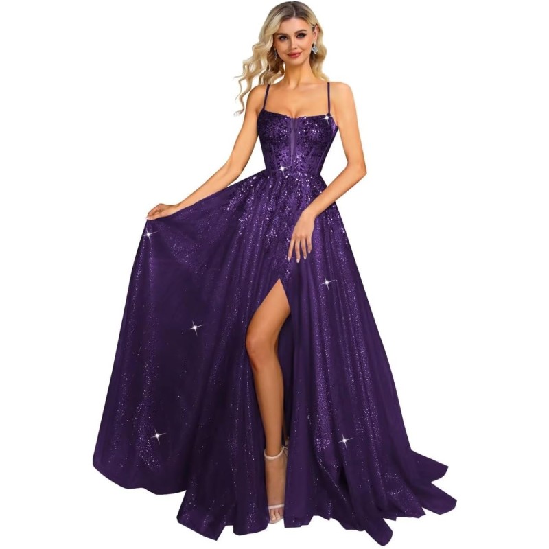 Be the first to review “homdor Sequin Applique Tulle Prom Dresses Long Spaghetti Straps V Neck Ball Gown Glitter Formal Evening Party Gowns(Grape)”