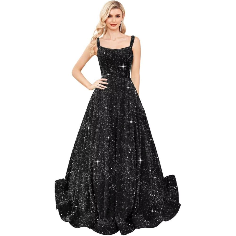 Be the first to review “homdor Sequin Prom Dresses Long A Line Ball Gowns for Women Sparkly Spaghetti Straps Formal Dress(Black)”