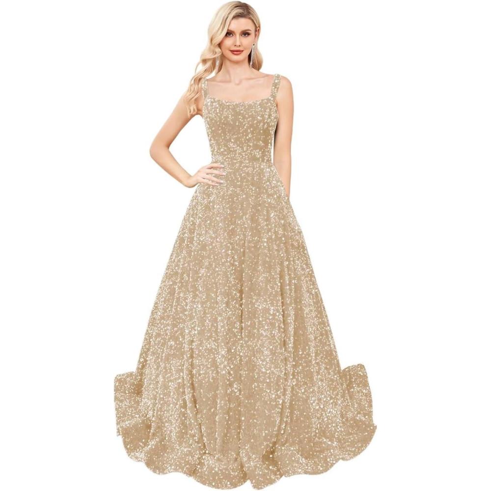 Get your hands on our exclusive homdor Sequin Prom Dresses Long A Line Ball Gowns for Women Sparkly Spaghetti Straps Formal Dress(Champagne) collection, now at a discounted price.