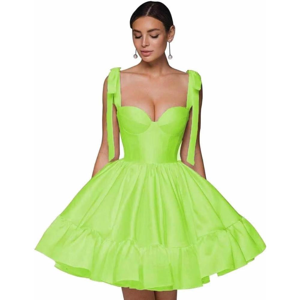 homdor Spaghetti Straps Satin Homecoming Dresses A-Line Prom Dress Cute Short Formal Cocktail Dress(Fluorescent Green)