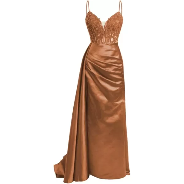 Lace Applique Prom Dress Silk Stain Bridesmaid Dress Spaghetti Straps Formal Dresses for Women Evening Party(Dusty Pink)
