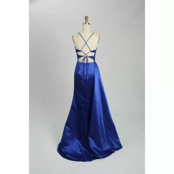 Lace Applique Prom Dress Silk Stain Bridesmaid Dress Spaghetti Straps Formal Dresses for Women Evening Party(Blue)