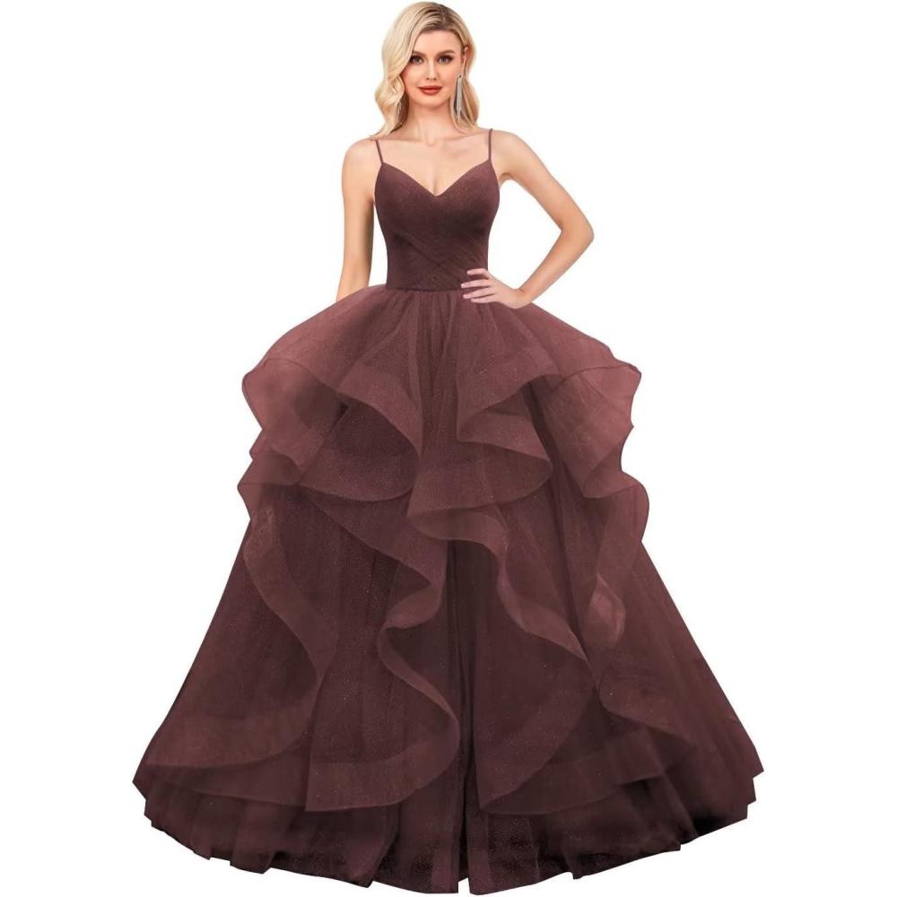 Be the first to review “Layered Tulle Prom Dresses Long Glitter Ball Gown A-Line Formal Evening Gown Sparkly Pageant Dress for Women(Burgundy)”