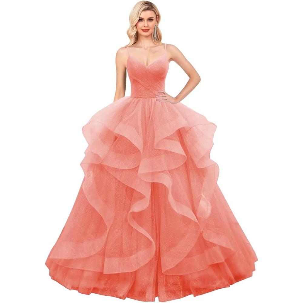Be the first to review “Layered Tulle Prom Dresses Long Glitter Ball Gown A-Line Formal Evening Gown Sparkly Pageant Dress for Women(Coral)”