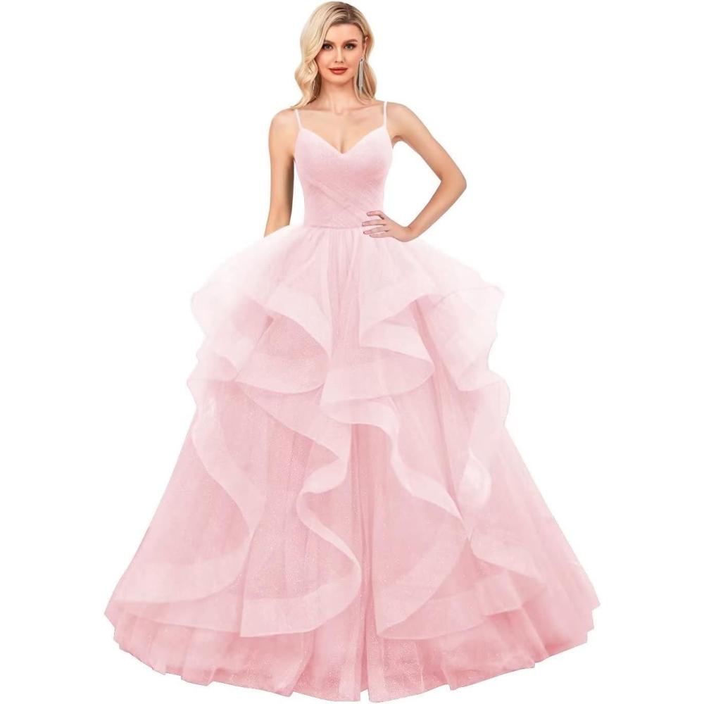 Be the first to review “Layered Tulle Prom Dresses Long Glitter Ball Gown A-Line Formal Evening Gown Sparkly Pageant Dress for Women(Pink)”