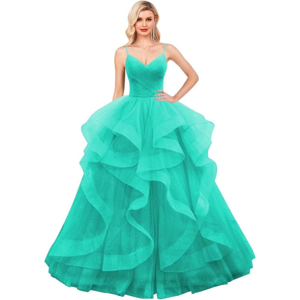 Be the first to review “Layered Tulle Prom Dresses Long Glitter Ball Gown A-Line Formal Evening Gown Sparkly Pageant Dress for Women(Turquoise)”