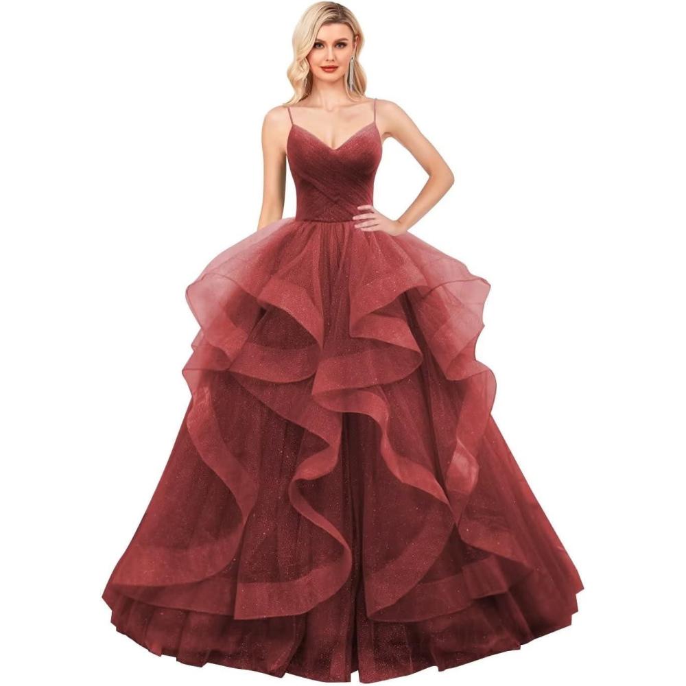 Be the first to review “Layered Tulle Prom Dresses Long Glitter Ball Gown A-Line Formal Evening Gown Sparkly Pageant Dress for Women(Wine Red)”
