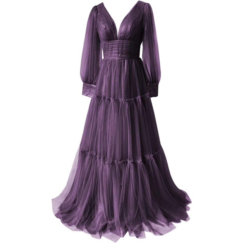 Be the first to review “Long Sleeve Prom Dress Tulle Ball Gown V Neck A Line Wedding Dress Plus Size Formal Evening Gowns for Women(Grape)”
