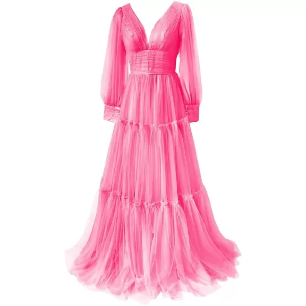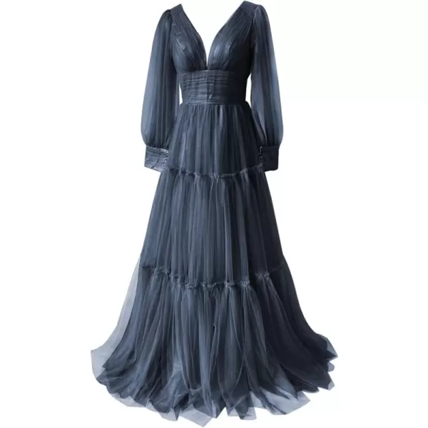 Long Sleeve Prom Dress Tulle Ball Gown V Neck A Line Wedding Dress Plus Size Formal Evening Gowns for Women(Grape)