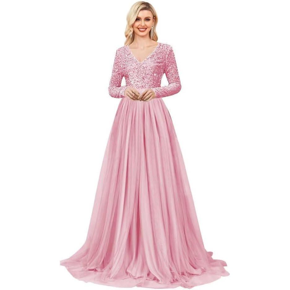 Get the Long Sleeve Sequin Prom Dresses for Women A Line Ball Gown V Neck Tulle Formal Dress Sparkly Evening Gowns(Blush Pink) you want at a discounted price during our markdown sale event.