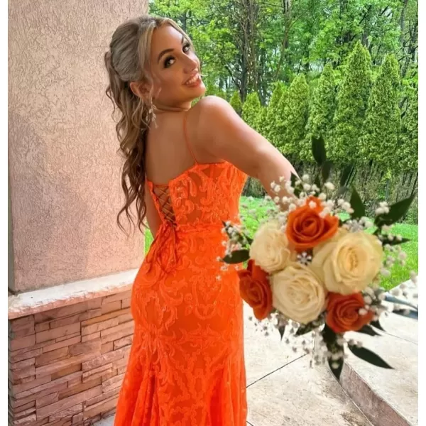 Mermaid Sequin Prom Dresses Spaghetti Straps Sparkly Formal Evening Dress V-Neck Party Dress with Slit(Royal Blue)