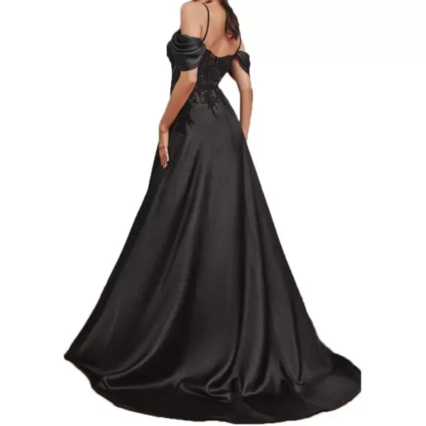 Off Shoulder Satin Bridesmaid Dresses for Wedding Spaghetti Straps Lace Applique Prom Dress Ruched Ball Gown(White)