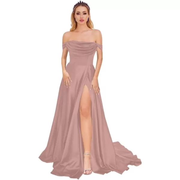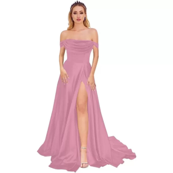 Don’t break the bank! Get the Off Shoulder Satin Bridesmaid Dresses Long Ruched Silk Prom Dress with Slit Formal Evening Gowns for Wedding you want at a price you can afford during our markdown sale.