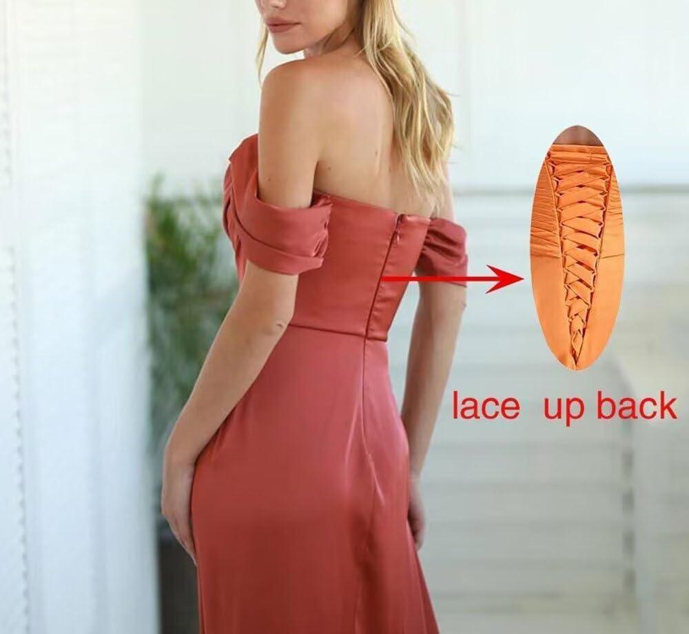 imageOff Shoulder Satin Bridesmaid Dresses Mermaid Wedding Dress Ruched Satin Prom Dresses Long for Women with CapeWisteria