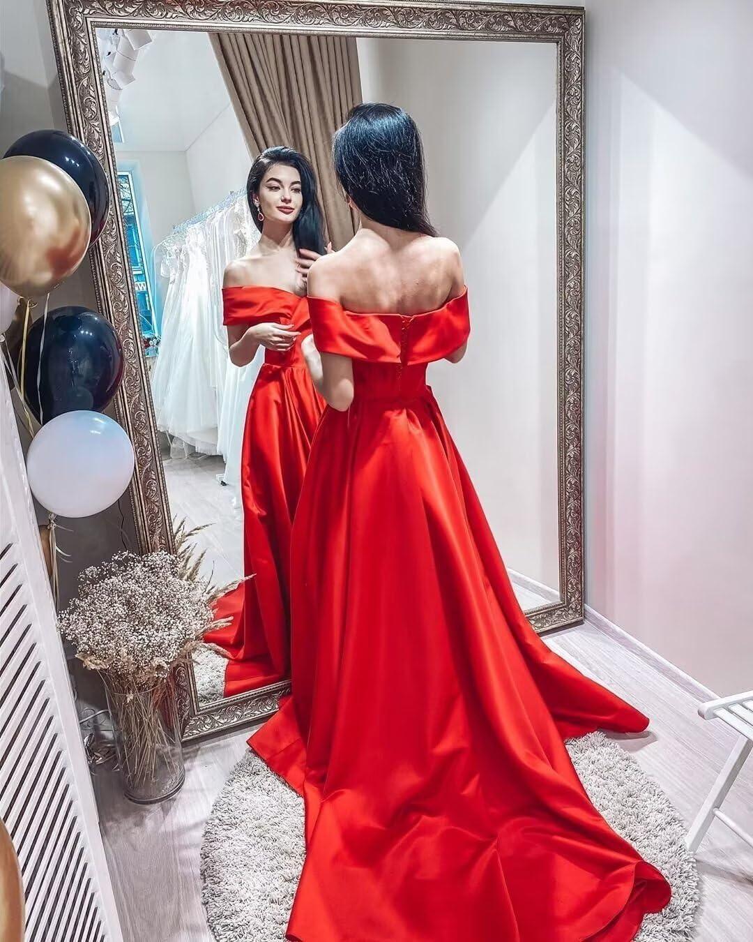 Be the first to review “Off Shoulder Satin Prom Dresses Ball Gown Plus Size Formal Dresses for Women Wedding Dress with Slit(Hot Pink)”