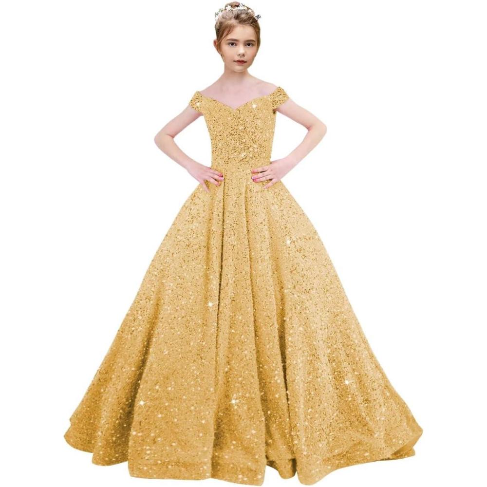 Get your hands on our newest Off Shoulder Sequin Flower Girl Dresses for Wedding Sparkly Pageant Dresses Ball Gown Princess Kids Toddler Dress(Gold) and enjoy a limited-time discount offer.