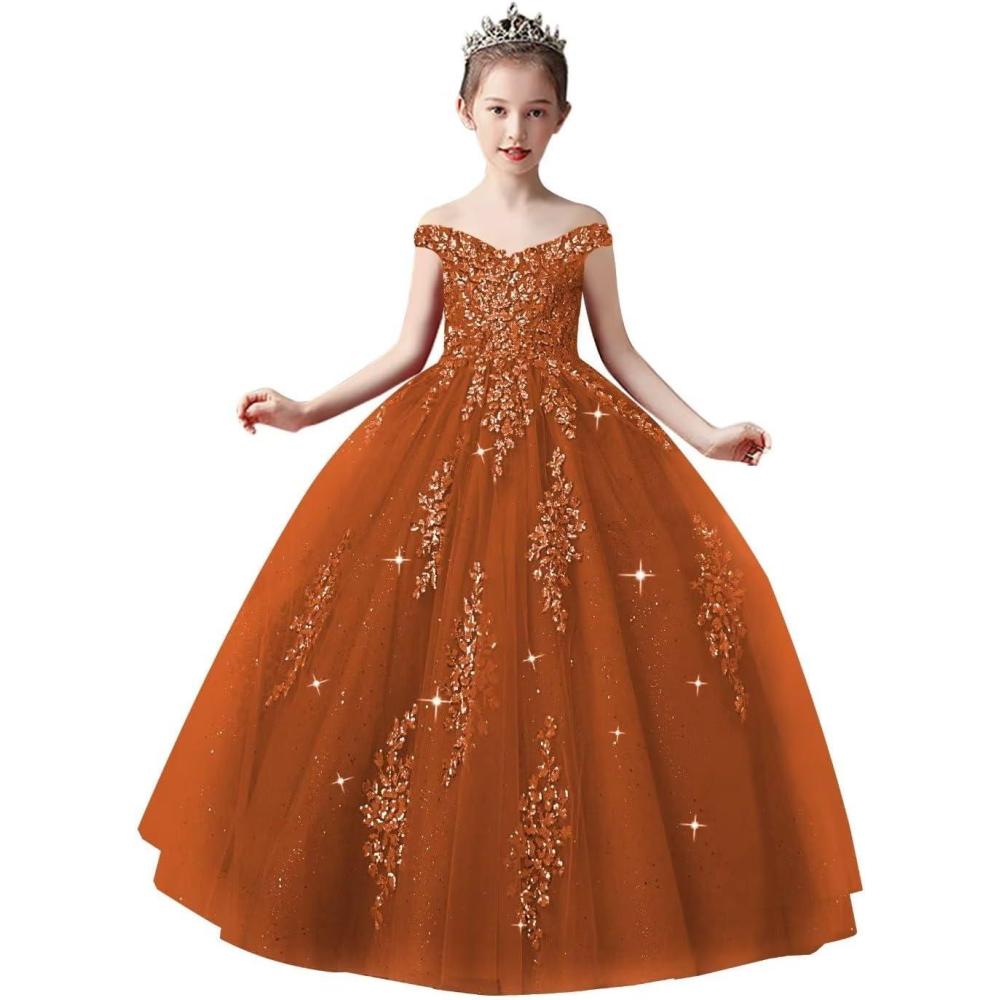 Get up to 60% off on Off Shoulder Tulle Pageant Dress Lace Applique Flower Girl Dress Ball Gown Toddler Kids Birthday Party Dress(Burnt Orange) styles during our winter sale event.