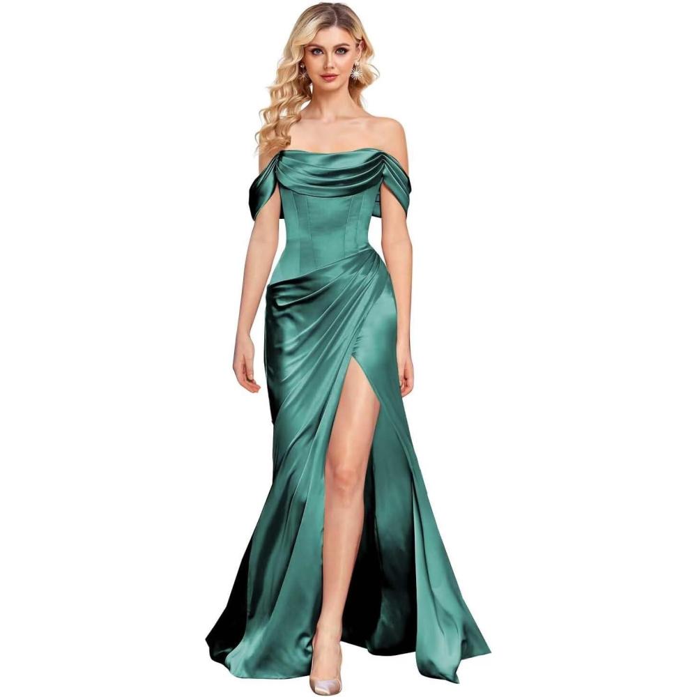 Be the first to review “Off The Shoulder Mermaid Prom Dresses for Women Satin Silk Ruched Wrap Formal Evening Gowns with Slit(Peacock)”