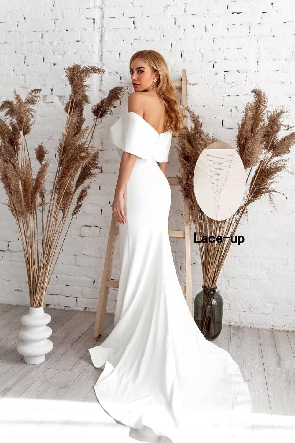 imageOff The Shoulder Mermaid Prom Dresses Long Satin Simple Wedding Dress Elegant Ruched Wrap Formal Evening Gowns for WomenBlack