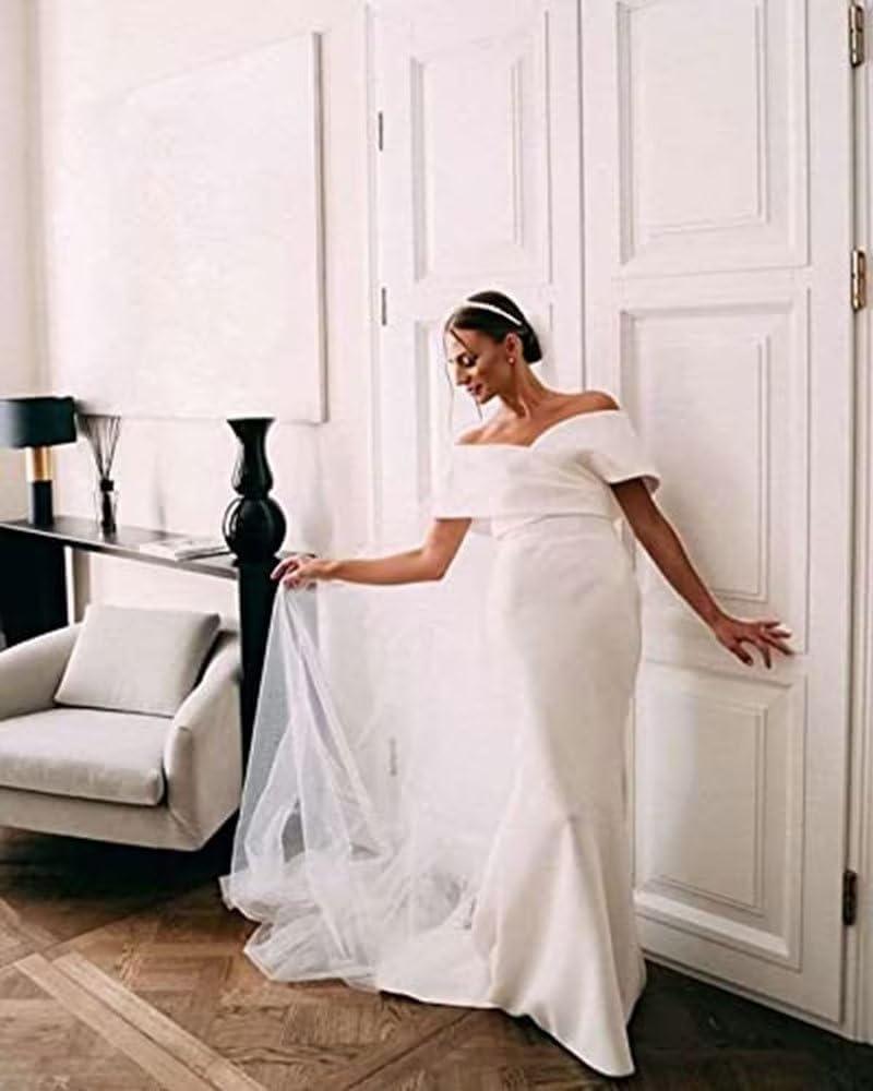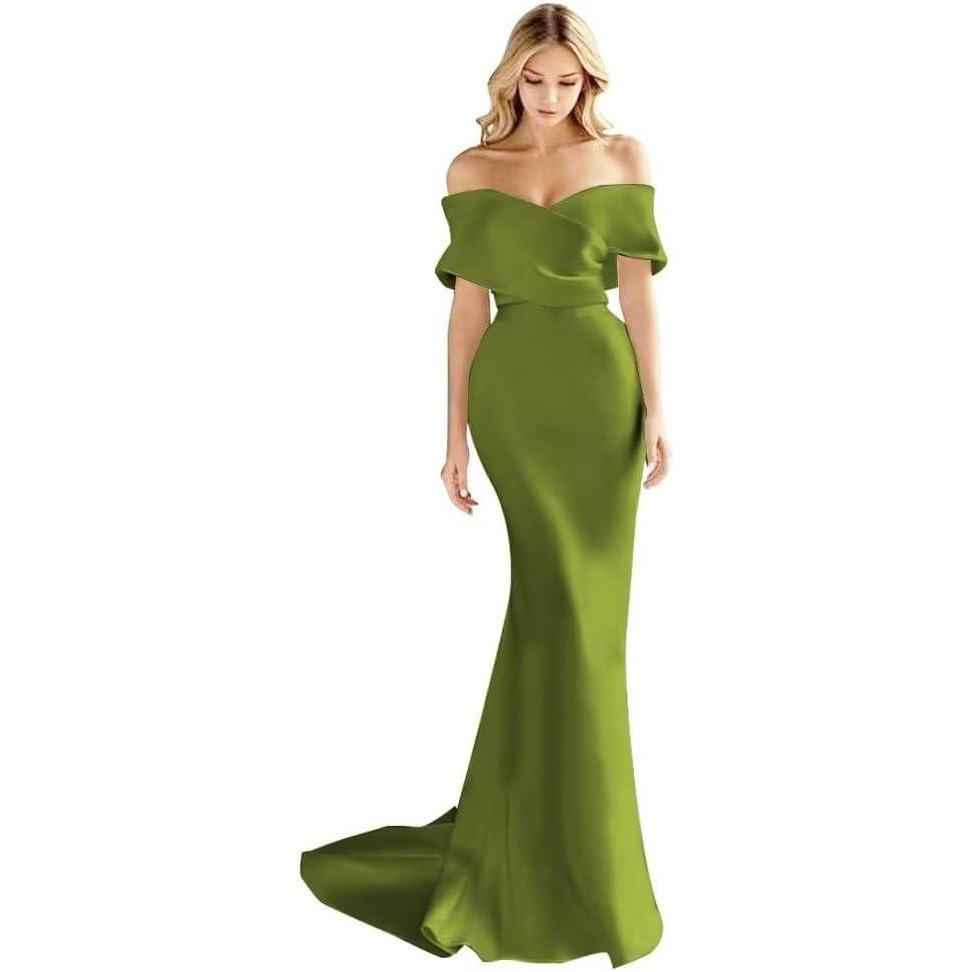 Off The Shoulder Mermaid Prom Dresses Long Satin Simple Wedding Dress Elegant Ruched Wrap Formal Evening Gowns for Women(Olive)