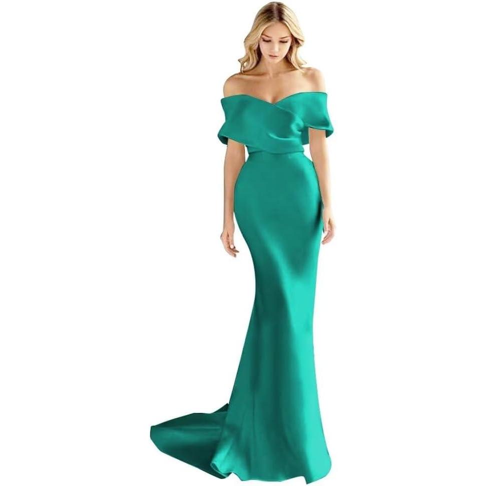 Off The Shoulder Mermaid Prom Dresses Long Satin Simple Wedding Dress Elegant Ruched Wrap Formal Evening Gowns for Women(Peacock)