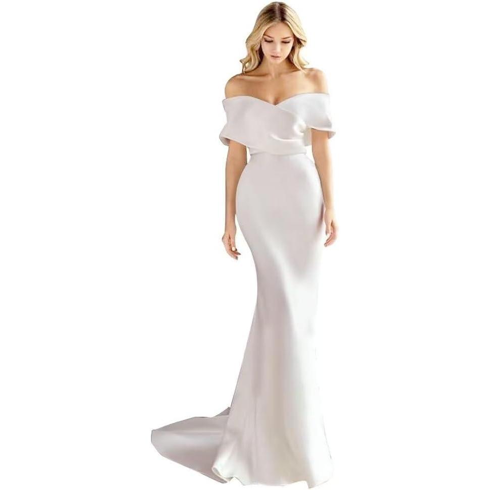 Get the Off The Shoulder Mermaid Prom Dresses Long Satin Simple Wedding Dress Elegant Ruched Wrap Formal Evening Gowns for Women(White) you’ve been eyeing at a discounted price during our seasonal sale event.