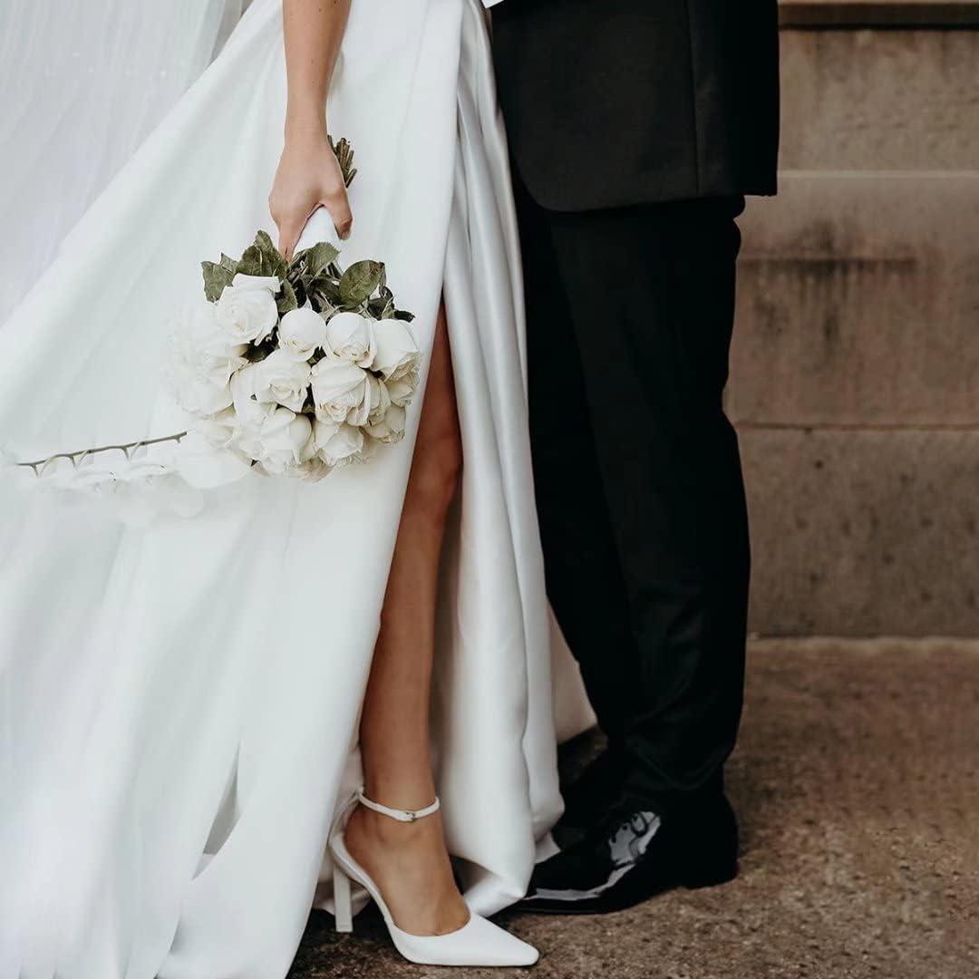 Off The Shoulder Satin Prom Dress for Women Long Ball Gown Wedding Dress Floor Length Formal Evening Gowns with Slit(White)