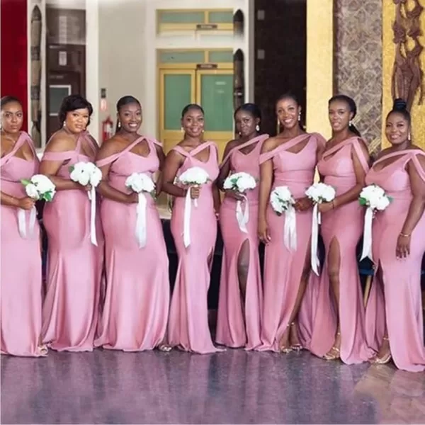 Be the first to review “One Shoulder Bridesmaid Dresses Mermaid Split Prom Dress Long Formal Gowns for Wedding(Blush)”