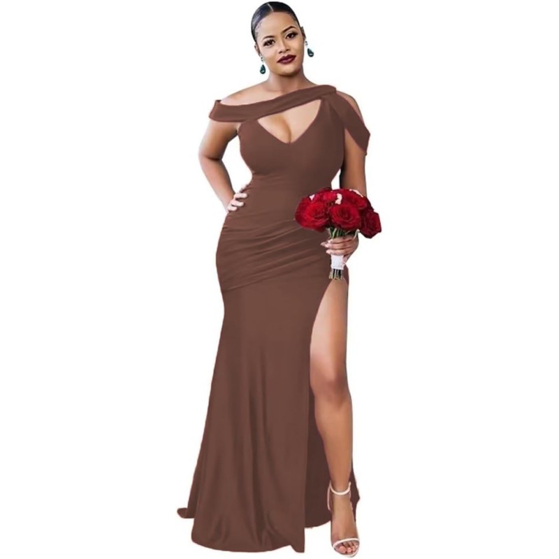 Be the first to review “One Shoulder Bridesmaid Dresses Mermaid Split Prom Dress Long Formal Gowns for Wedding(Borwn)”
