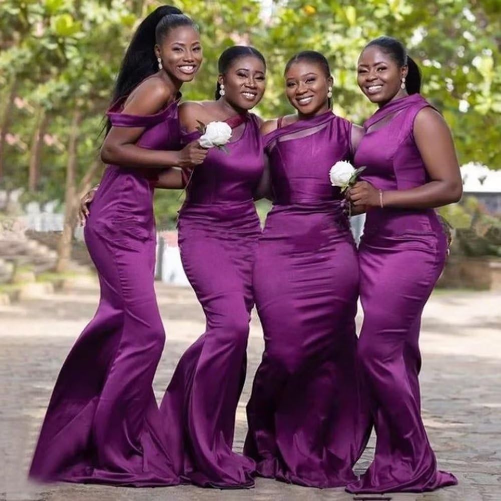 One Shoulder Bridesmaid Dresses Mermaid Split Prom Dress Long Formal Gowns for Wedding(Purple)
