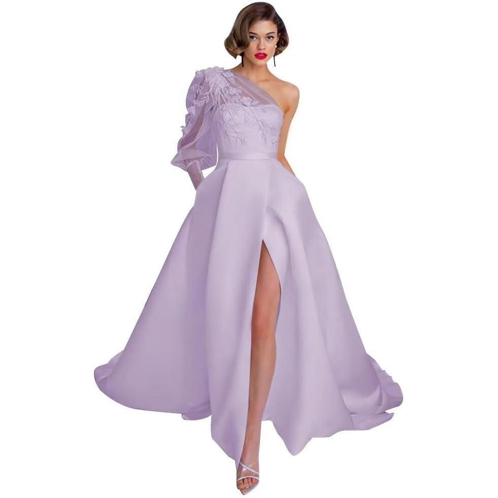 Don’t miss out on our limited-time offer: buy One Shoulder Lace Applique Prom Dresses Long Sleeve Wedding Dresses Tulle A Line Princess Ball Gown with Slit(Lavender), get {accessory} 50% off!