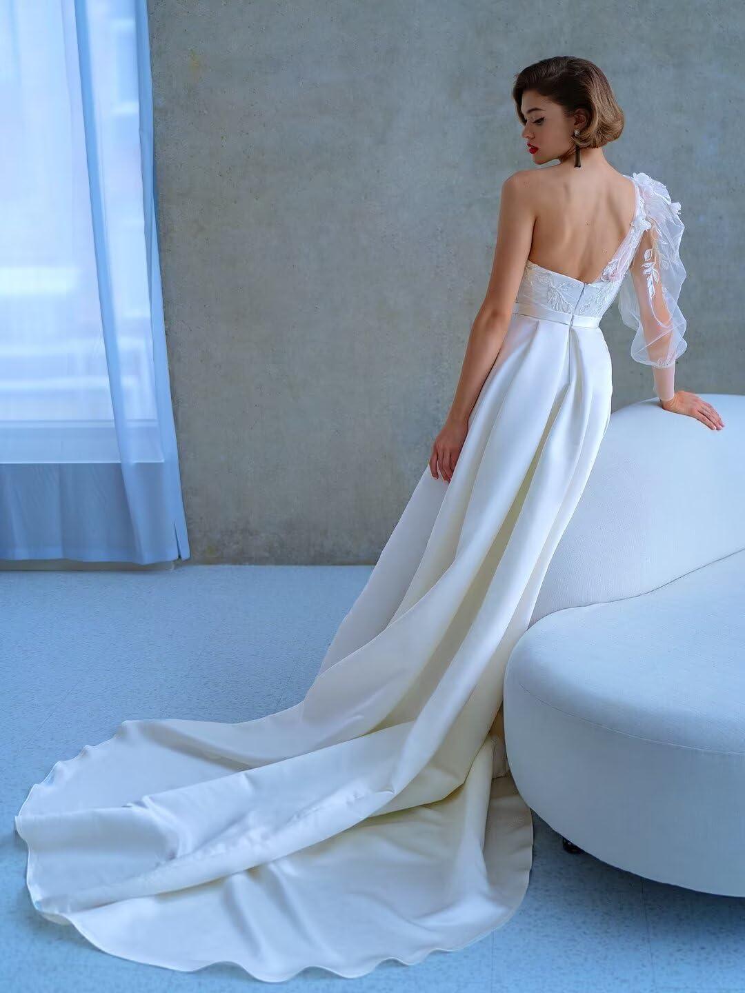 Be the first to review “One Shoulder Lace Applique Prom Dresses Long Sleeve Wedding Dresses Tulle A Line Princess Ball Gown with Slit(Red)”
