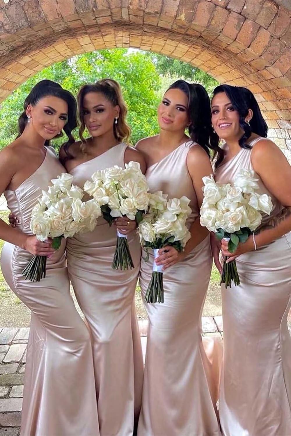 One Shoulder Mermaid Bridesmaid Dresses for Wedding Ruched Bodycon Prom Dress Long Formal Evening Gowns(Gold)
