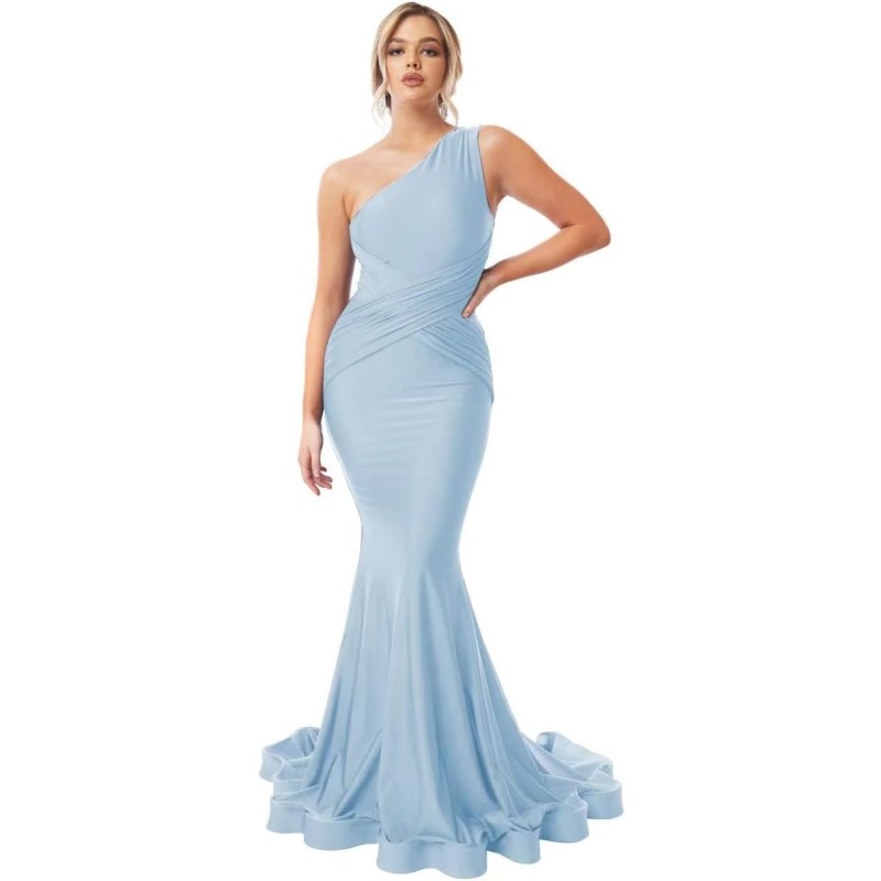 One Shoulder Mermaid Bridesmaid Dresses for Wedding Ruched Bodycon Prom Dress Long Formal Evening Gowns(Sky Blue)