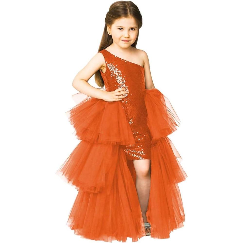 Get up to 70% off on One Shoulder Sequin Pagent Dresses Girls Tulle Ball Gown Layered High Low Flower Girl Dress for Wedding(Orange) styles during our end-of-season clearance event.