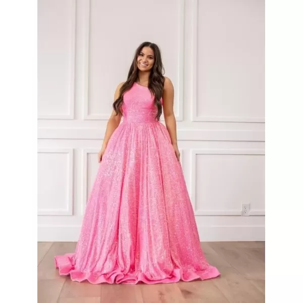 One Shoulder Sequin Prom Dresses 2024 Long Ball Gown Sparkly A Line Formal Evening Gowns with Pockets(Champage)
