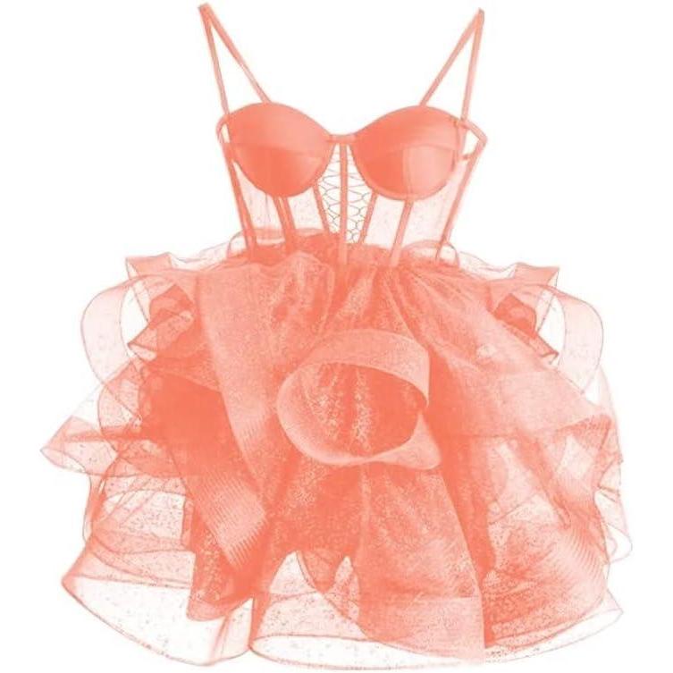 Organza Tulle Homecoming Dresses Spaghetti Straps Layered Short Prom Dress Sweetheart Cocktail Gown(Coral)