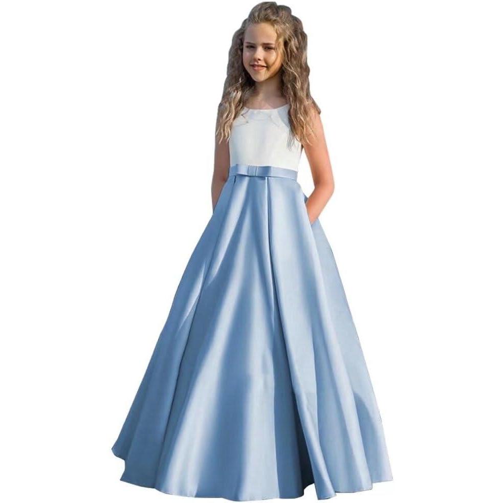 Satin Flower Girl Dress First Communion Dress Kids Wedding Ball Gowns Princess Party Girls Pageant Dress(Dusty Blue)