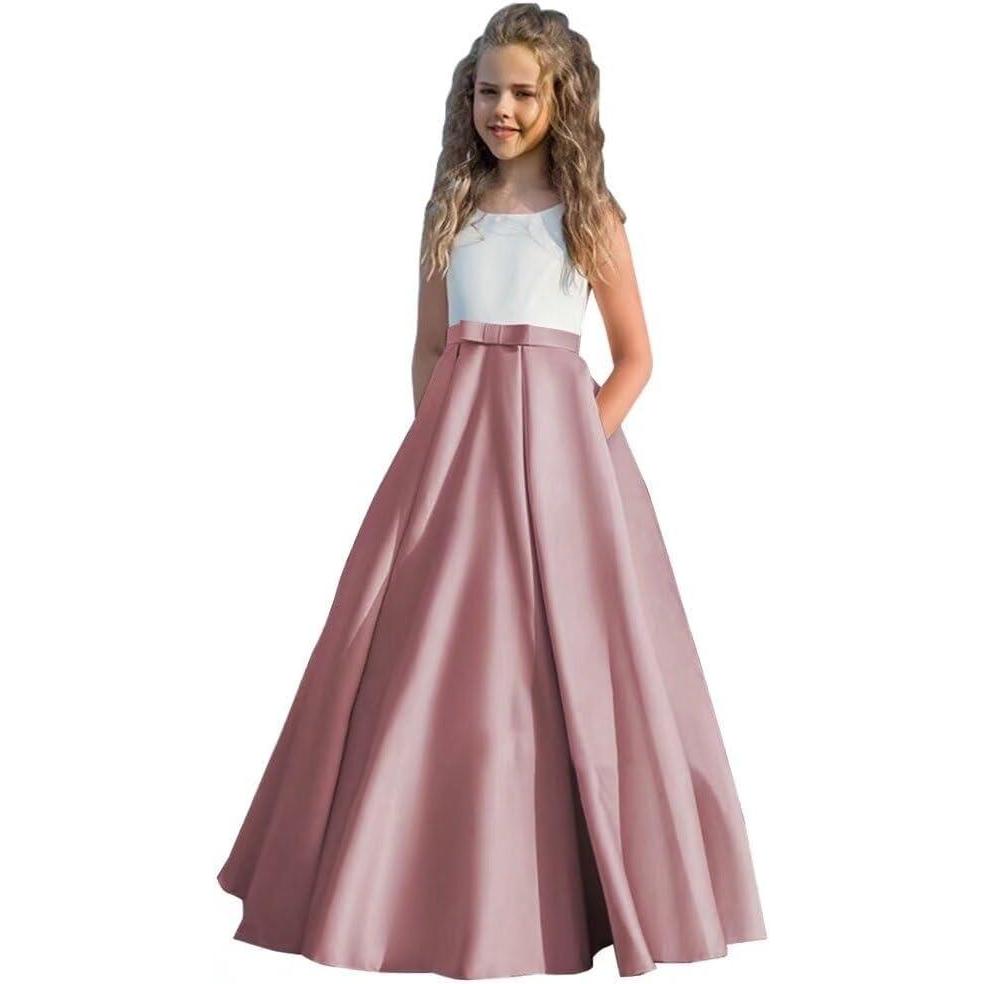 Satin Flower Girl Dress First Communion Dress Kids Wedding Ball Gowns Princess Party Girls Pageant Dress(Dusty Rose)