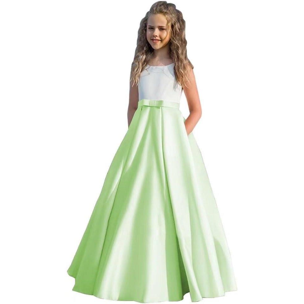 Satin Flower Girl Dress First Communion Dress Kids Wedding Ball Gowns Princess Party Girls Pageant Dress(Mint Green)