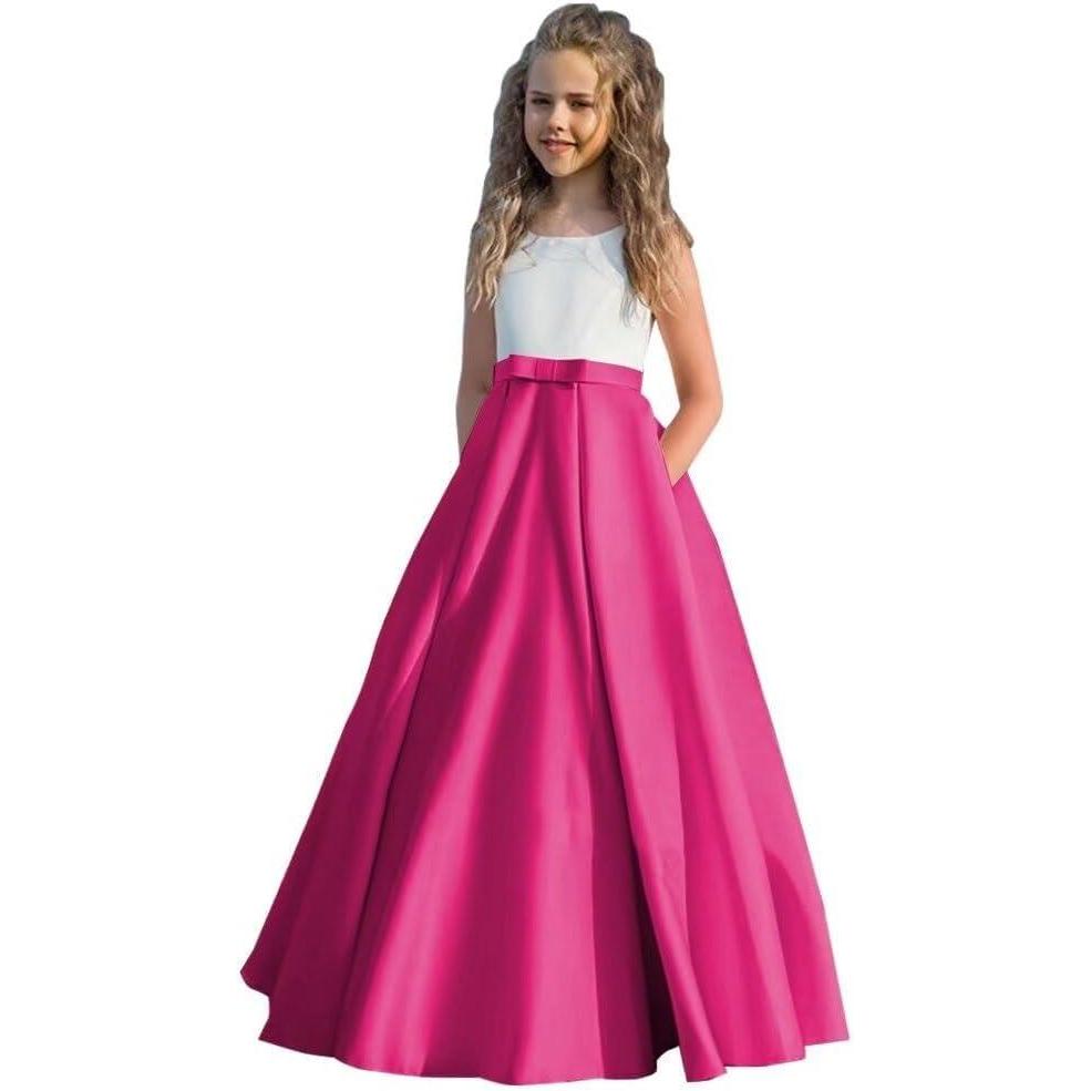 Satin Flower Girl Dress First Communion Dress Kids Wedding Ball Gowns Princess Party Girls Pageant Dress(Rose Red)