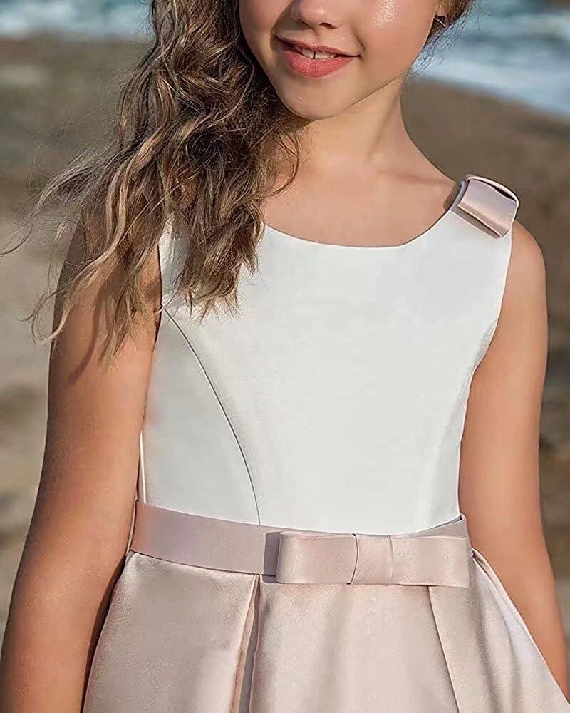 Satin Flower Girl Dress First Communion Dress Kids Wedding Ball Gowns Princess Party Girls Pageant Dress(Gold)