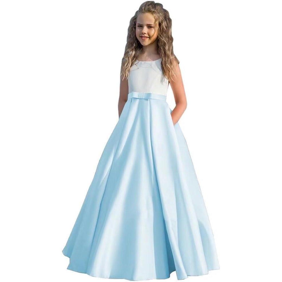 Satin Flower Girl Dress First Communion Dress Kids Wedding Ball Gowns Princess Party Girls Pageant Dress(Sky Blue)