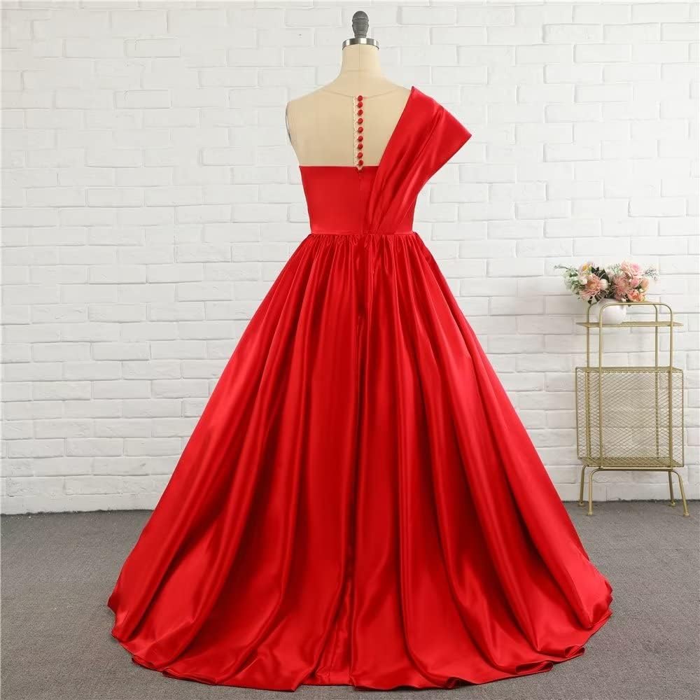 Satin One Shoulder Flower Girl Dresses for Wedding Ball Gown Puffy Pageant Gown Cute First Communion Dress(Coral)