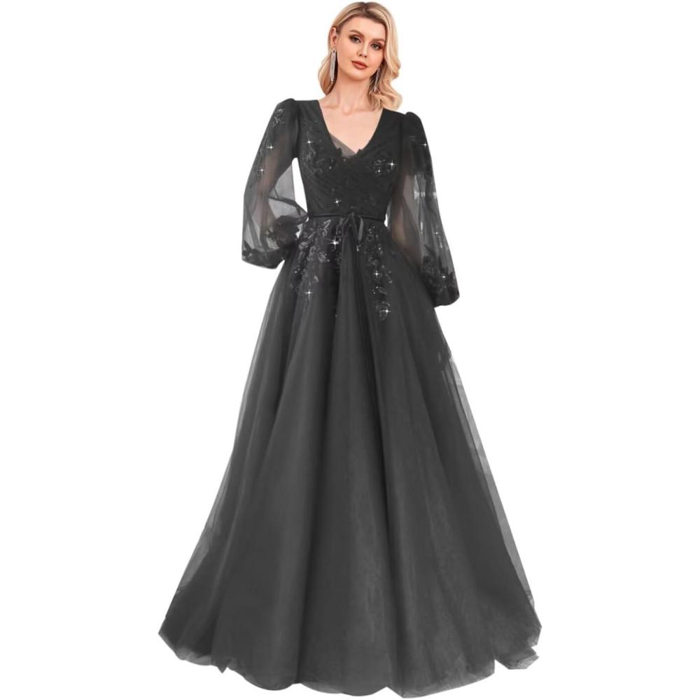 Get up to 70% off on Sequin Applique Long Sleeve Prom Dress Sparkly Tulle Ball Gown A Line V Neck Formal Evening Gowns(Black) styles during our end-of-season clearance event.