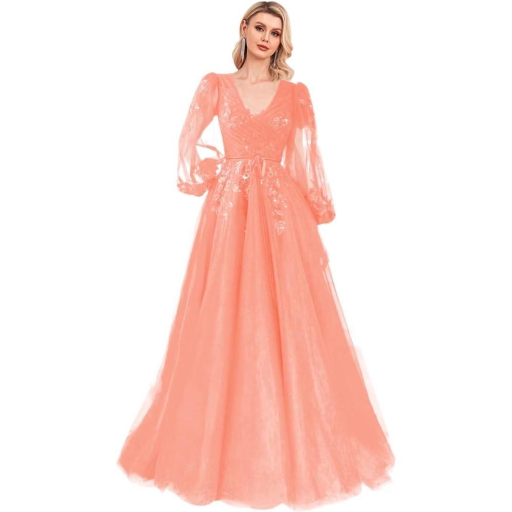 Be the first to review “Sequin Applique Long Sleeve Prom Dress Sparkly Tulle Ball Gown A Line V Neck Formal Evening Gowns(Coral)”