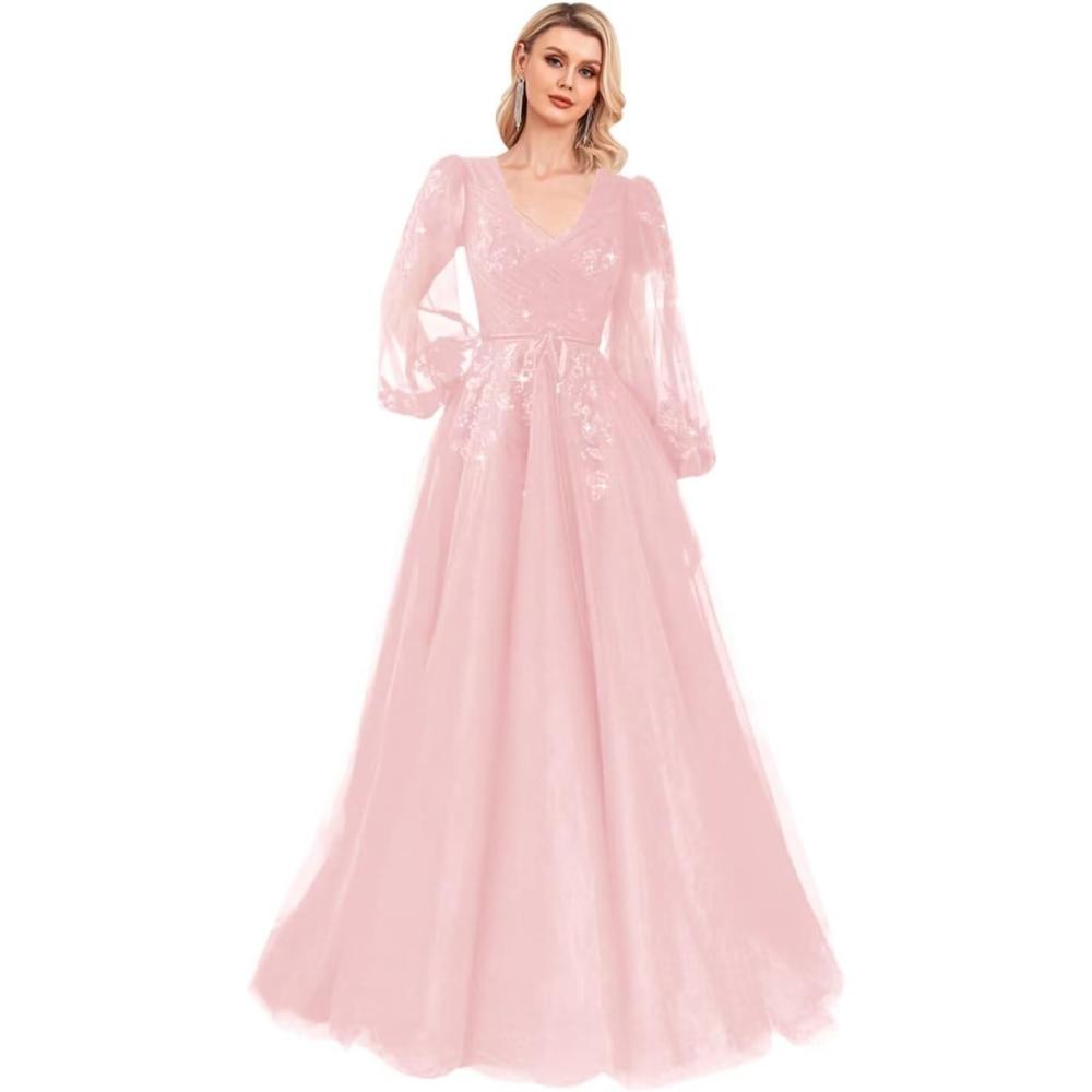 Get the Sequin Applique Long Sleeve Prom Dress Sparkly Tulle Ball Gown A Line V Neck Formal Evening Gowns(Pink) you want at a discounted price during our markdown sale event.